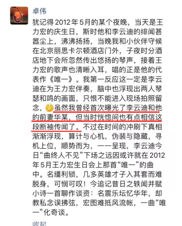 卓伟似乎又开始露面了,在李云迪事件里,他也按捺不住八卦之心,贡献了浓墨重彩的一笔。