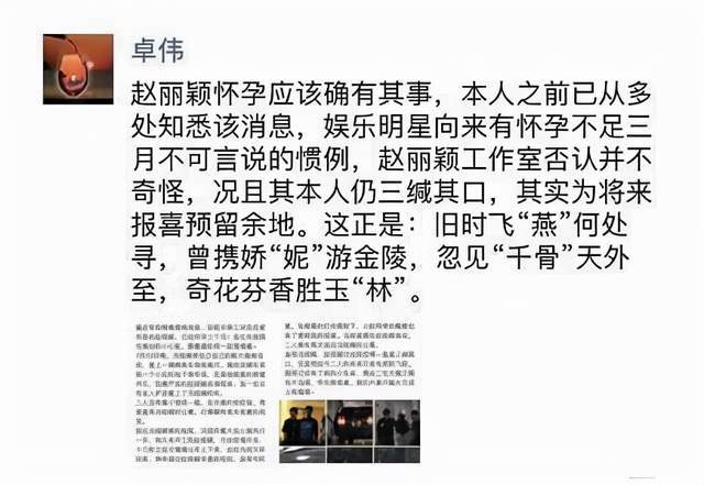 2018年,卓伟爆料赵丽颖怀孕,因为卓伟的爆料向来快准狠,吃瓜群众都对此深信不疑。
