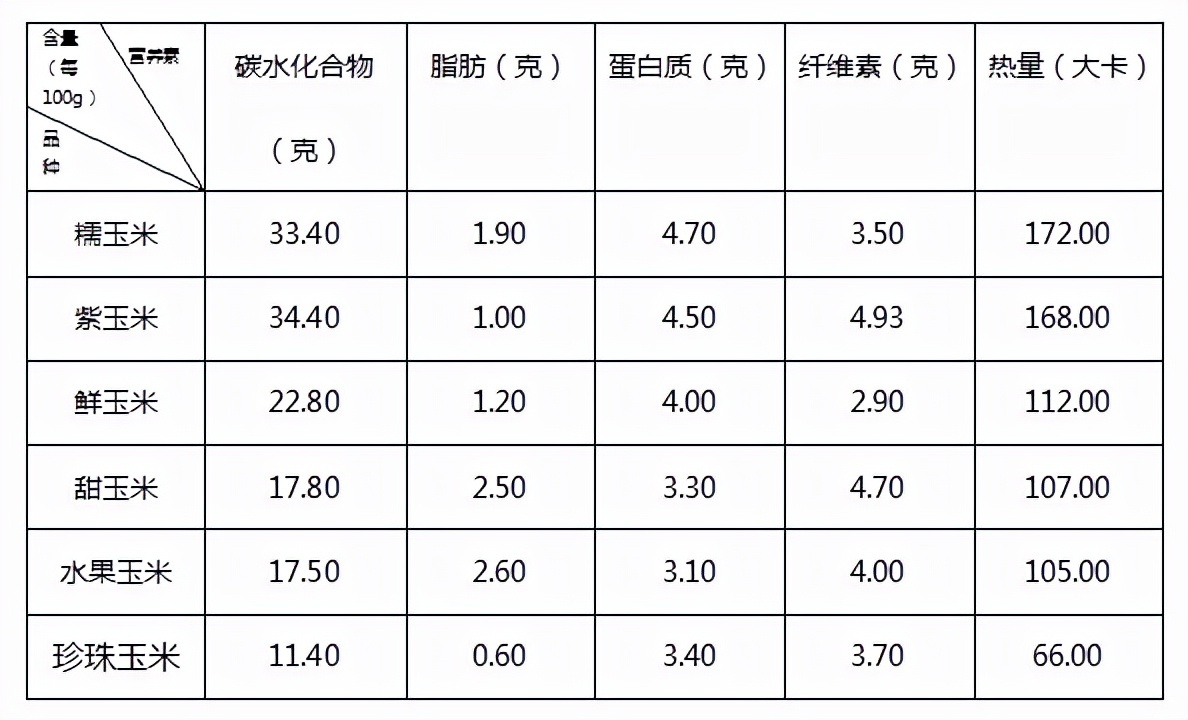 不同品种的玉米,营养成分及热量都有所差异,按同等重量的热量排序有[1]:糯玉米>紫玉米>鲜玉米>甜玉米>水果玉米>珍珠玉米。因此,减肥期更推荐珍珠玉米、水果玉米和甜玉米噢!