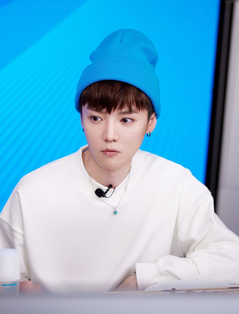 可爱犯规!鹿晗宝蓝针织帽遮齐刘海呆萌可爱,托腮扶额少年感足