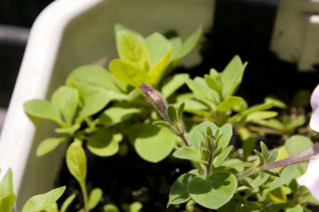 有朋友说他的盆栽矮牵牛(Petunias)开花量特别少,而且茎长得特别长,这其实就是没有注意修剪,也有可能是茎叶徒长导致的,如果环境过度遮阴,矮牵牛茎叶之间的间隙会不断拉长,茎叶的颜色也会变得越来越嫩,出现这种情况肯定就没办法开花了。