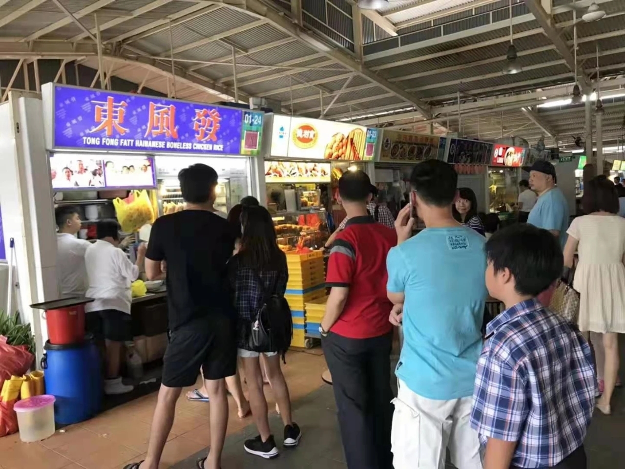“东风发”位于一个普通的小贩中心(food centre),我们是坐出租车去的,司机告诉我们,在新加坡,有好多这类小贩中心,卖各位小吃和水果,是当地普遍人没时间做饭时,解决一日三餐的所在地,他也经常到小贩中心吃饭,快速和便宜,适合出租车司机们。问他哪里的海南鸡饭好吃?他说他们家附近的小贩中心的好吃,虽然没什么名气。听这口气,明显的“谁不说俺家乡好”,只是在新加坡这个弹丸之地,“家乡”这个概念换成了“家附近”。