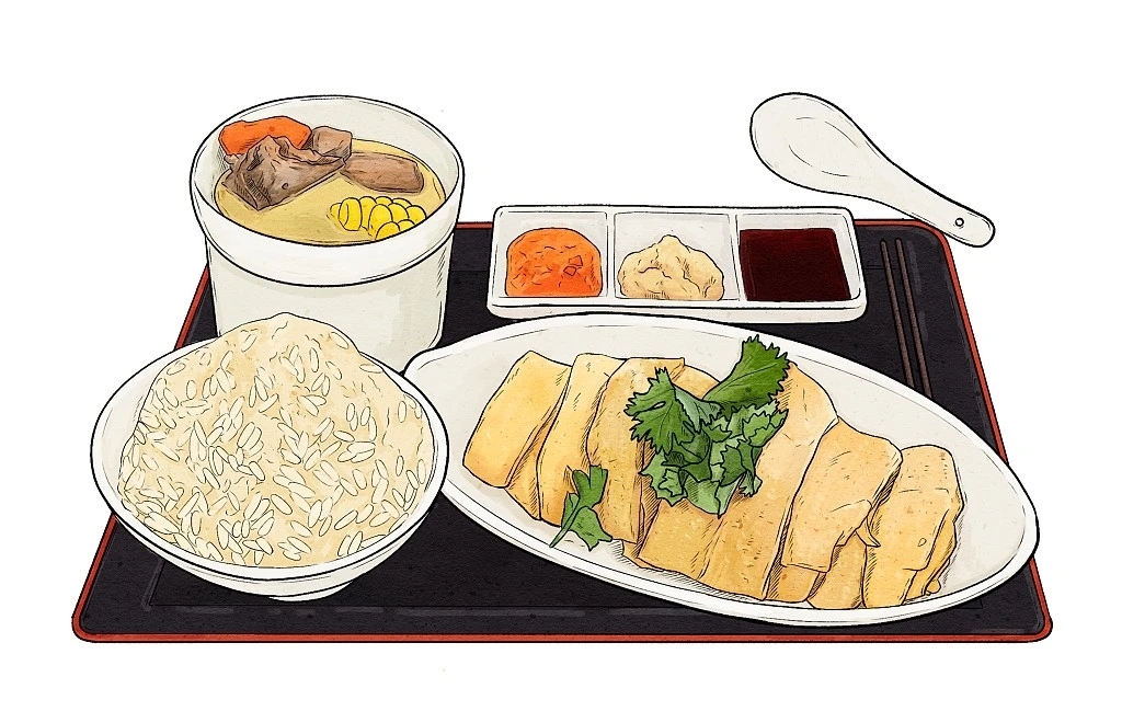新加坡的国菜,除了肉骨茶,还应该算上海南鸡饭。这种以鸡油、鸡汤浸煮的米饭上码着几块鸡肉,浇上特制酱汁的蛋白质与碳水化合物组合,打着海南的名字,新加坡人却毫不客气地给它打上“国菜”的荣誉。