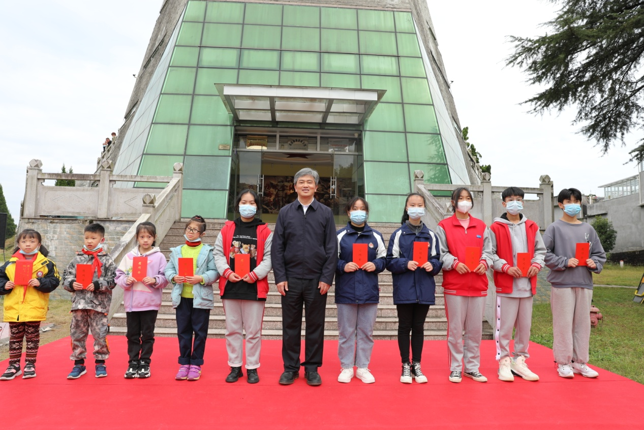 捐赠仪式上,阮诗玮还向革命烈士凌福顺故乡的10位困难学生代表发放了慰问金。捐赠仪式结束后,全体人员参观了凌福顺纪念馆,缅怀革命先烈,聆听凌福顺烈士的革命故事,接受红色精神的洗礼和教育,铭记初心使命。