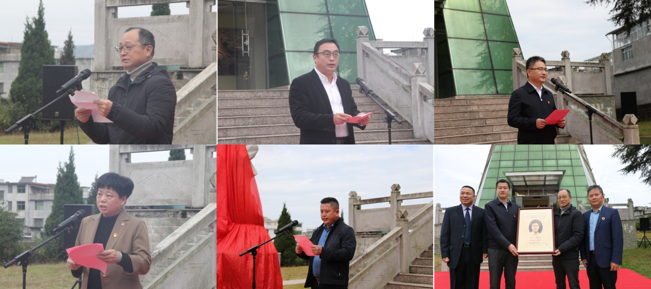 本次活动以“崇尚英雄 携手同行”为主题,福建省政协副主席、民盟福建省委会主委阮诗玮,宁德市副市长、民盟宁德市委会主委黄建龙,中共周宁县委书记袁华军、县长陈文卿、县政协党组书记陈梁、县委统战部部长李旱雨、民盟中央宣传委员会委员、民盟江苏省常州市李公朴支部主委倪建春、常务副主委何学东、组织委员姜必龙、福建省商盟公益基金会执行会长、福建省雕刻艺术家协会会长陈文荣、副会长李甲栈、郑金星、常务理事黄平辉、郑玉林、陈为坦、驻会秘书长陈建辉等参加活动。仪式由福建省政协副秘书长、民盟福建省委会专职副主委刘泓主持。