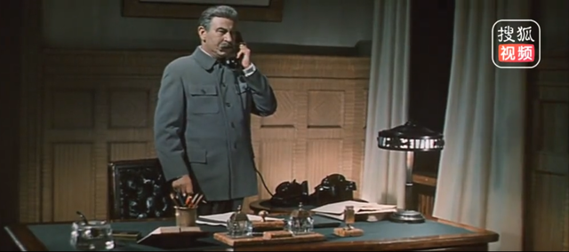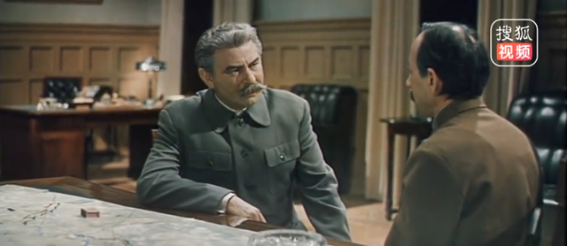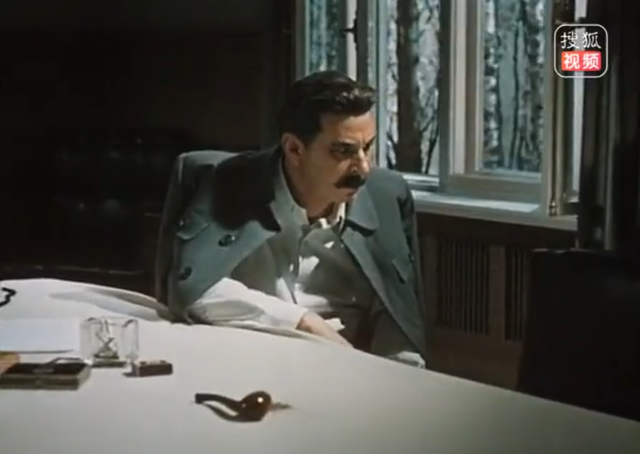 相比之下,奥泽洛夫《莫斯科保卫战》里的斯大林,直接略过了他听到德军入侵时的情绪交待,而是一下子就进入到在克里姆林宫的办公室里,召开紧急会议,商洽对策。