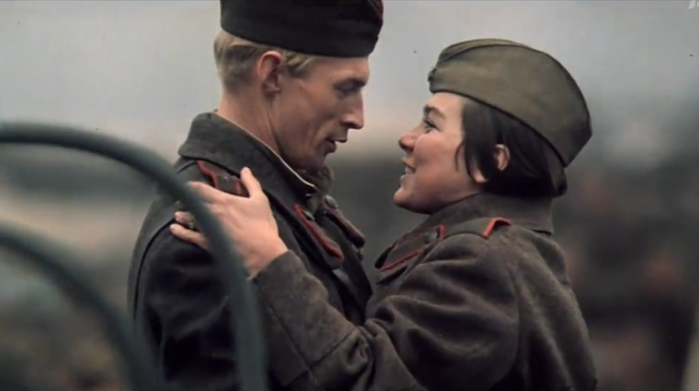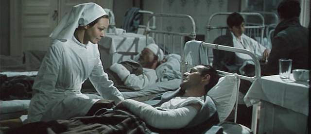 《解放》中也出现了一个女医护兵卓娅,在电影里贯穿全片。但是,毕竟《解放》是全景式表现战争的,这个女兵并没有与男兵建立起三角纠葛。