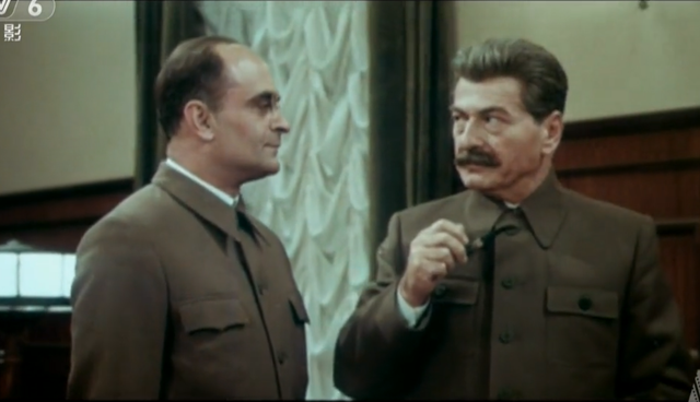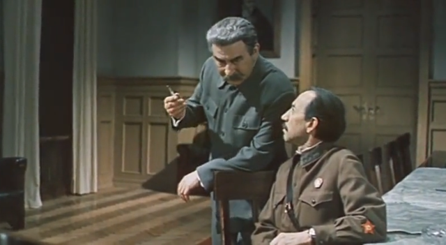银幕上最终把斯大林落脚于一个坚定而负责任的领导者形象。