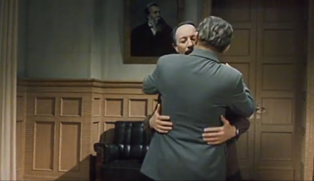 剧中,专门设置了一个斯大林的老友来看望斯大林,这一个虚构的老友,大致可以看出,与1949年版的《斯大林格勒大血战》中虚构的与斯大林一起阅读《战争与和平》的察里津老友有着相似的构思。