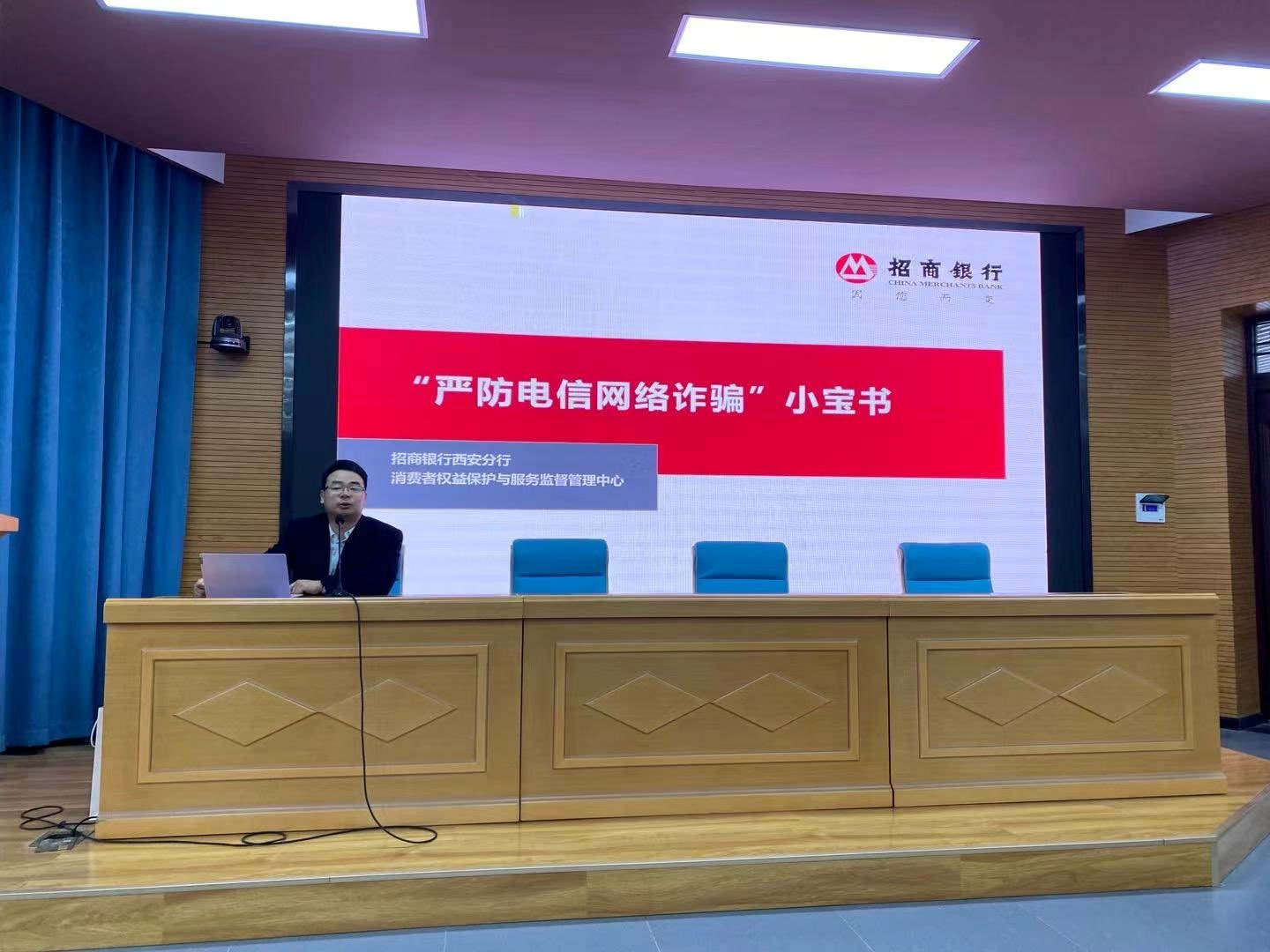 近期,招商银行咸阳分行走进陕西财经职业技术学院,以“加强自我防范意识,提高识骗防骗能力”为主题,开展2021年“网络安全,守护你我”宣传活动,为在校学生详细讲解相关金融知识,并结合当地人行相关要求,开展人民币识别、反假币宣传,切实提升学生消费者的风险防范意识和金融素养。