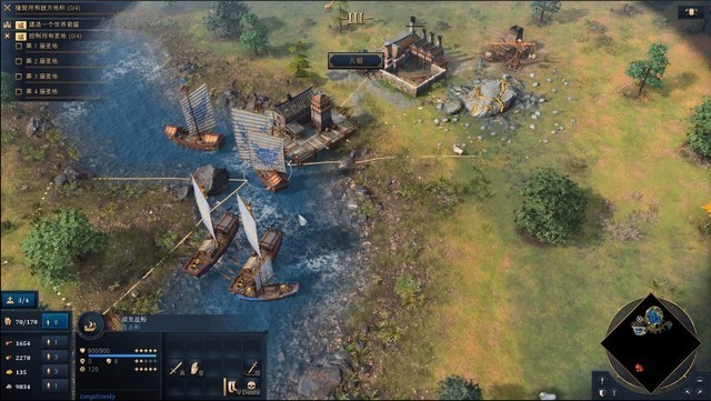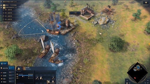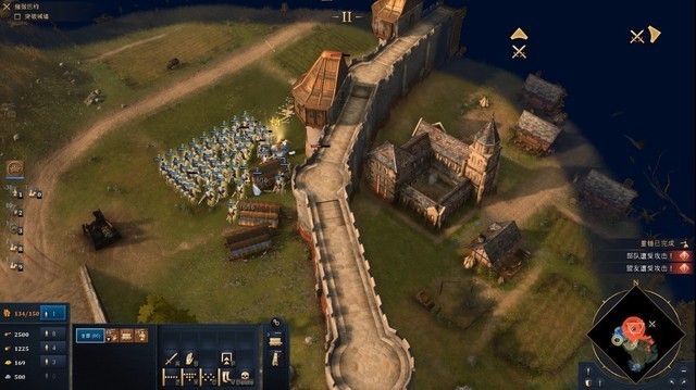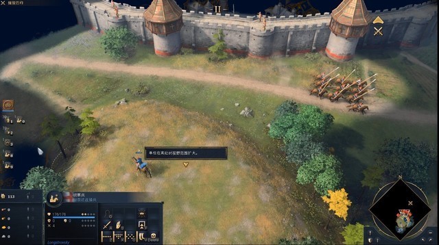 不得不说,这一代的《帝国时代》或许是对新手教程做的最细致的,狼叫兽在试玩的时候一直可以看到非常详细的提醒,相比较上次测试的时候最后不知道自己是如何获胜的,目标明确了许多。获胜的方法不局限于把对面全部拆完,还可以建设并保住一个世界奇观,或是控制地图上四个圣地,我最终选择了简单直接的“爆兵推进”玩法。