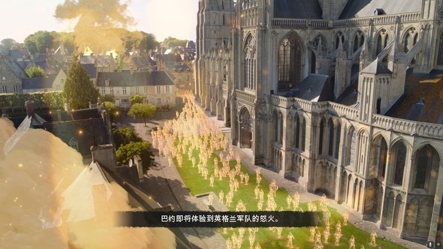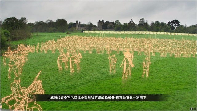 本代战役模式的主要特色就是加入了基于现代的实拍场景制作的场景画面,通过金黄色的虚拟人物来重现当年的史诗,可以说是非常用心的做法,而历史遗迹的加入也让我们非常具象化的了解到底当时的场面是什么样的。