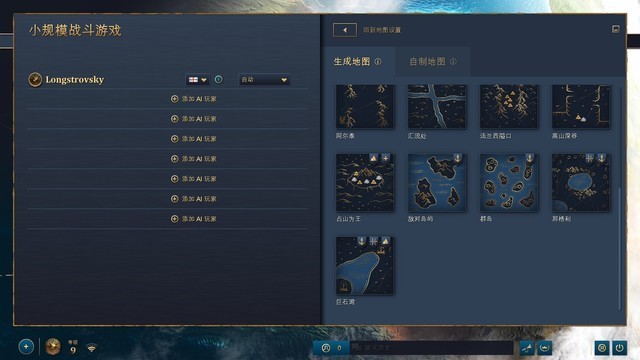除了战役模式,还有大家经常玩的小规模战斗模式,其实也就是自选地图的对战,和之前的版本一样,有很多的预设地图可以选择,其中甚至有岛屿战,基本就是全靠船只运输战斗单位过去才能对战,这个感觉还是很复杂的,不过这一代的船只也有了一些升级,可以直接参与对陆地的进攻,很多船都有专门的攻击范围指示。