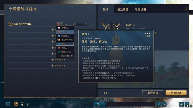 对于新增的文明,大家可能最关心的就是中国文明和蒙古文明,蒙古文明的最大特色就是所有的建筑都可以打包变成单位带走,到其他地方重新部署,这充分展现了游牧的特色。