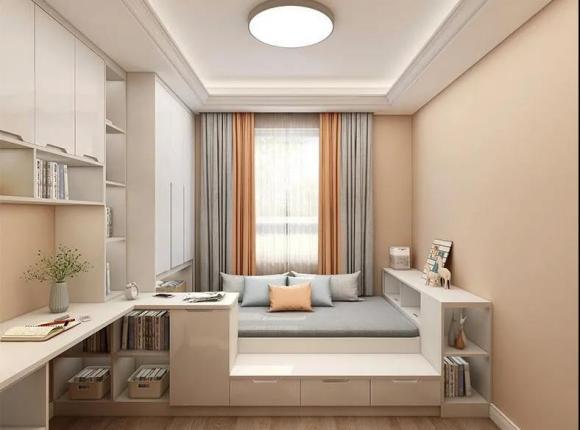 它的功能性这么强,但是对房间的面积大小要求却不严格,就算是在不足10㎡的小卧室中也能完美打造,当然,这样设计还能在最大程度上保证室内空间的统一性,让房间的美观度也UPUP!