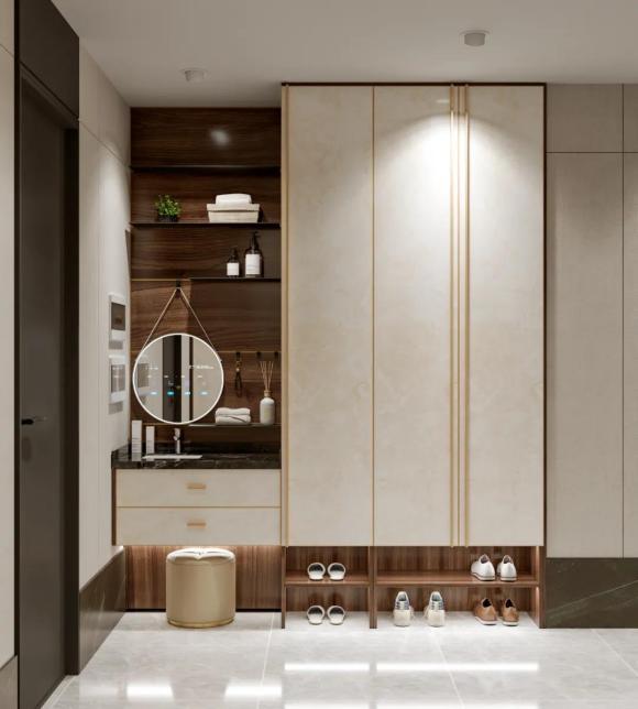 随着时代的发展,家居产品也在不断智能化和科技化。如今,用手机就可以控制全屋灯光和电源;在入户处安装智能化妆镜,不仅可以整理仪容,还可以显示天气、温度;玄关柜内装上智能鞋柜,可以一键消毒,还具有杀菌功能,大大提升了生活便利度。