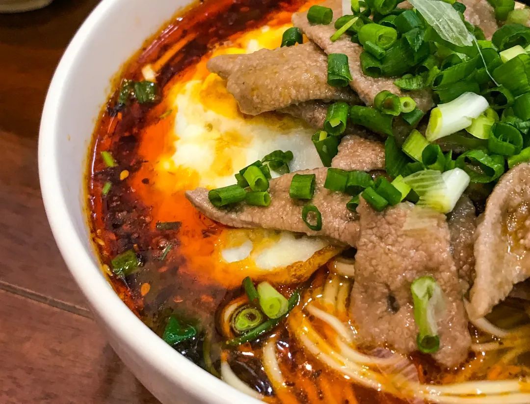 麻哥面、猪肝面来自 武胜,但成年人不做选择,熟练地跟老板说上一句“一两麻哥微辣加肝和煎蛋,面起硬点”是经验丰富老饕的行话,也是点餐时“看,哥们儿懂行”的完美展现。