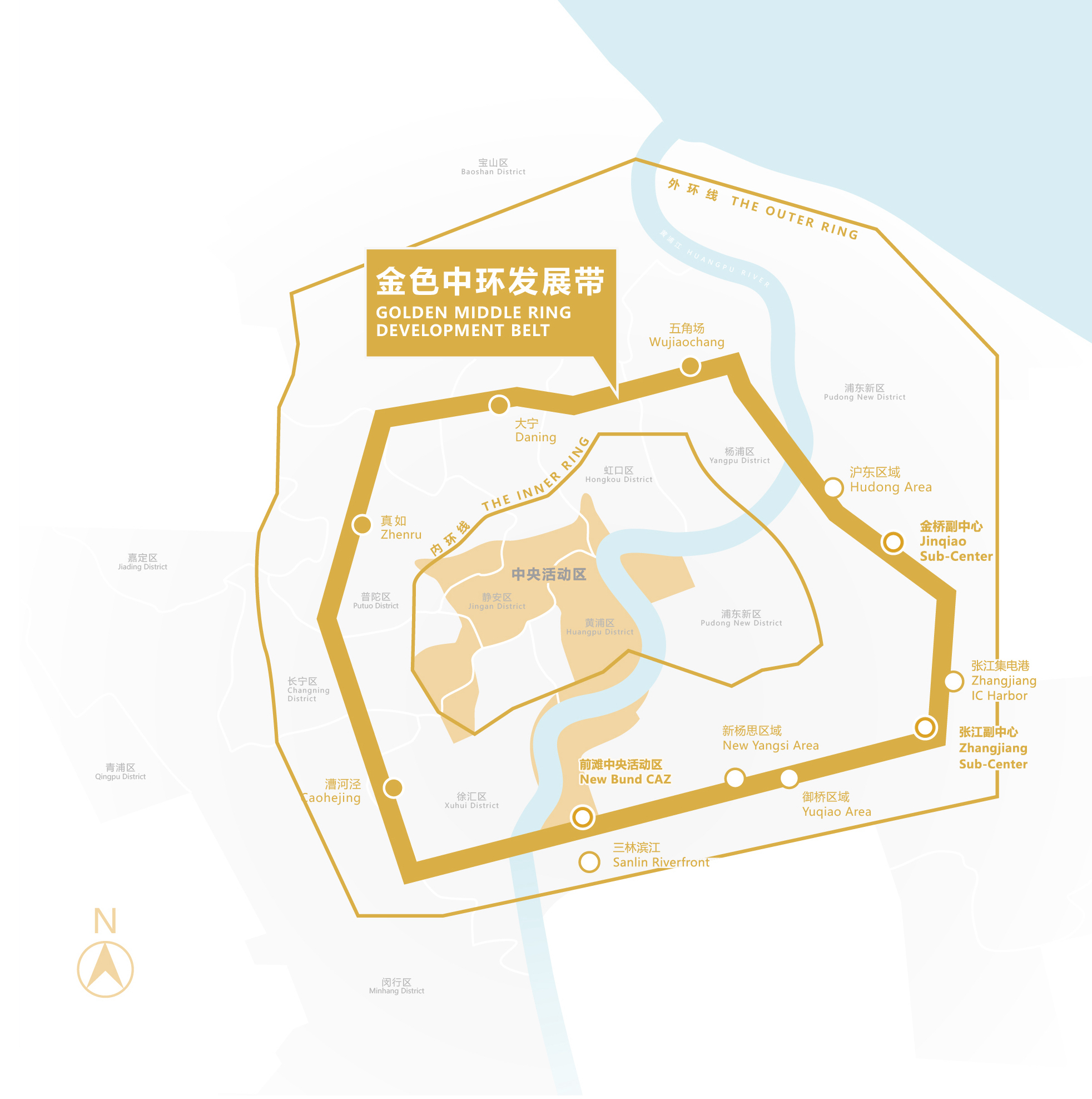 「金色中環」將成為浦東活力四射、宜居宜業的幸福家園。「金色中環」建設預控了大量生態用地,擁有碧雲、北蔡、三林3大楔形綠地,總面積超25平方公里,並規劃金橋中央公園、張江未來公園等地區公園,以及大量沿江沿河綠道系統。