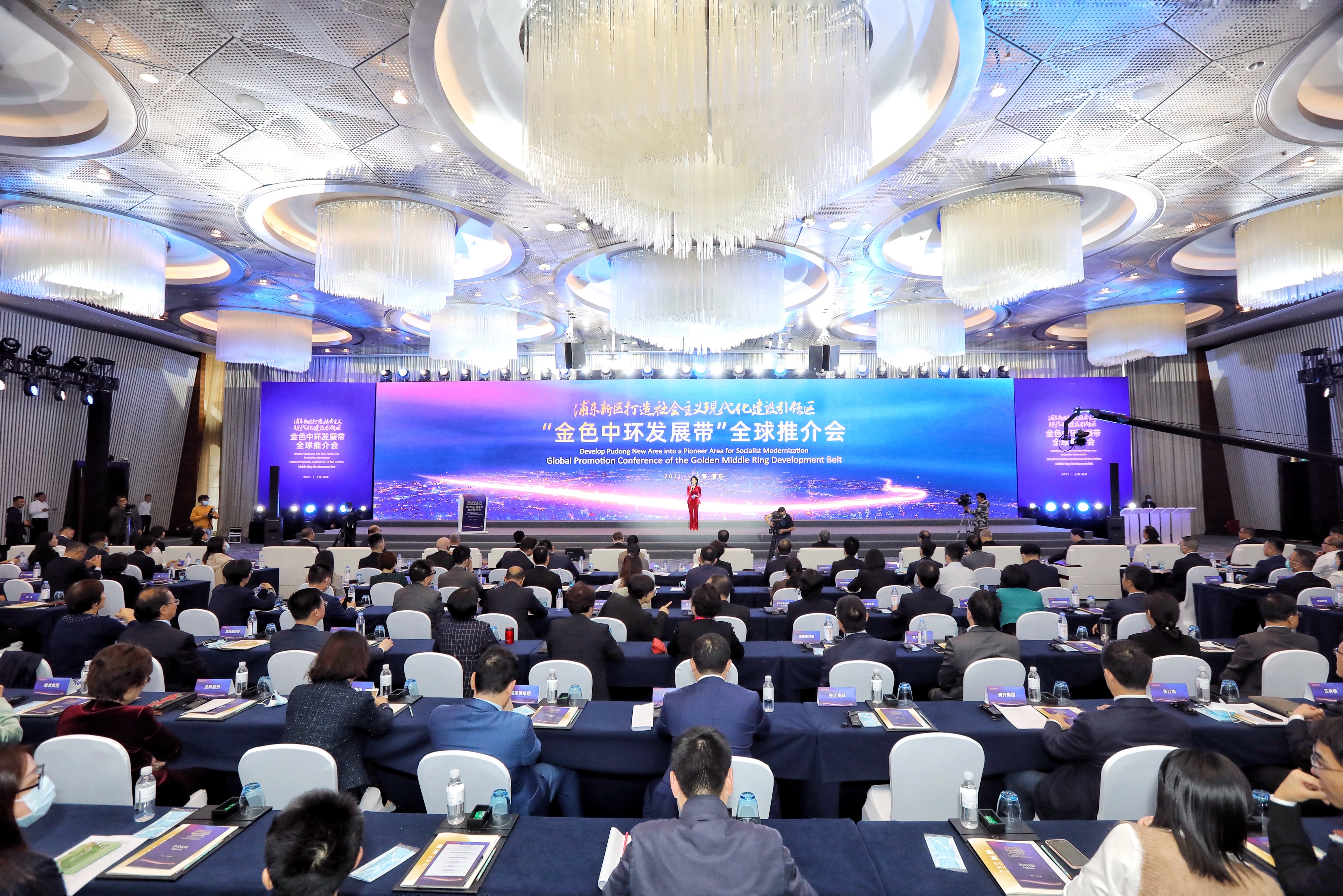 中國上海浦東新區10月26日舉行「浦東新區打造社會主義現代化建設引領區‘金色中環發展帶’全球推介會」。