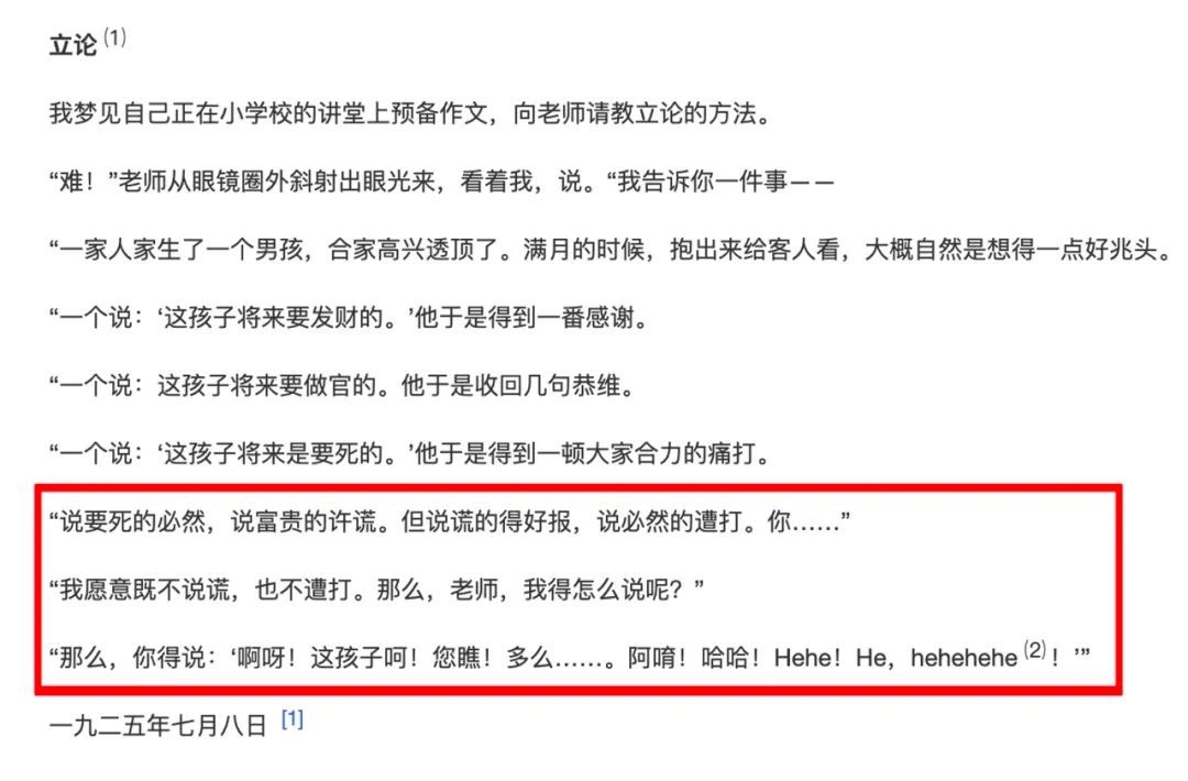 不仅如此,老师的日子,也过的不好,他总写“乱七八糟”的文章,招惹上了麻烦。长此以往,已经有了精神问题。面对当下的情况,他找来了鲁迅先生的《立论》(摘录如下)。