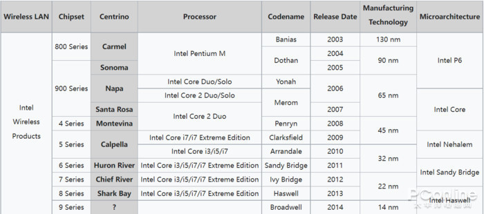 简单回顾一下,首代迅驰的开发代号为Carmel,于2003年3月正式启动。第一代迅驰平台提供奔腾M处理器(代号为Banias、P6微架构、工艺制程130nm,是第一款专门为笔记本电脑设计的处理器),英特尔855芯片组系列主板,支持IEEE 802.11b或 IEEE 802.11ab标准的Wi-Fi无线网络接收器。凭借着P6微架构,奔腾M处理器在当时就展现出极高的能效比,在满足高性能的同时也兼顾降低功耗和发热,因此非常适合笔记本这样的移动平台。而Wi-Fi无线网络的支持,则开辟更多使用场景,树立了笔记本电脑移动办公的可能性。总之,高性能低功耗的处理器+无线网络连接,对未来的笔记本发展指引了方向。