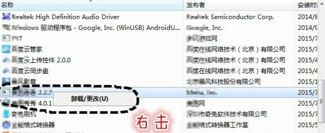 4、找到不必要的垃圾程序,右击会出现如图选项,单击卸载。