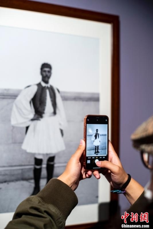 10月28日,市民在北京中华世纪坛艺术馆参观“奥运摄影师的1896——来自奥林匹克故乡希腊的祝福”图片展,用手机记录首届现代奥运会马拉松运动员的形象。