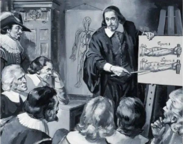 以我们今天的知识看,血液循环理论无比正确,但是在哈维生活的17世纪,这毕竟是推翻了希波克拉底和盖伦的伟大的理论,敢这么想都是极其叛经离道的行为,更不要说提出正式的理论了。
