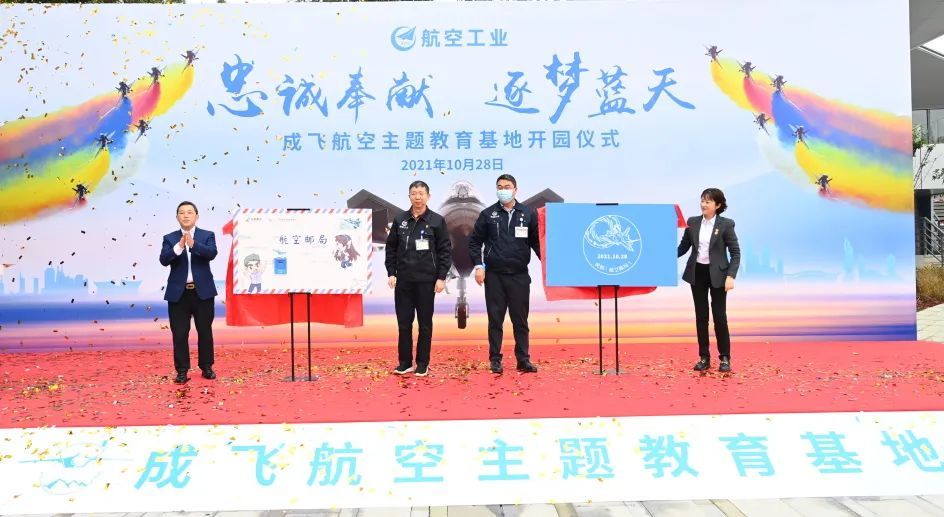 航空文化与邮政文化互融互促,在成飞航空主题教育基地设立了四川首家航空邮局,并在仪式现场为航空邮局和风景日戳揭幕。
