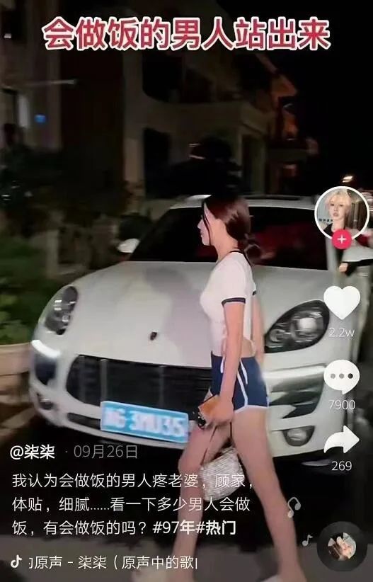 同样一辆车换个年轻女孩来开,难道她和前面男的是一对儿?