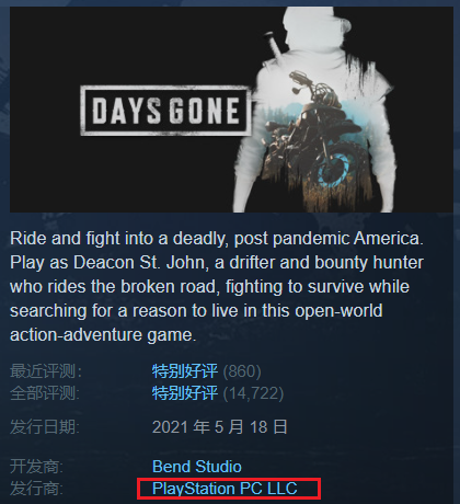 IT之家了解到,PlayStation PC LLC 发行商目前有四款游戏,分别是《往日不再》、《万众狂欢》、《GUNS UP!》、《地狱潜者》。最新上架 Steam 的《战神 4》的发行商仍为 PlayStation Mobile。