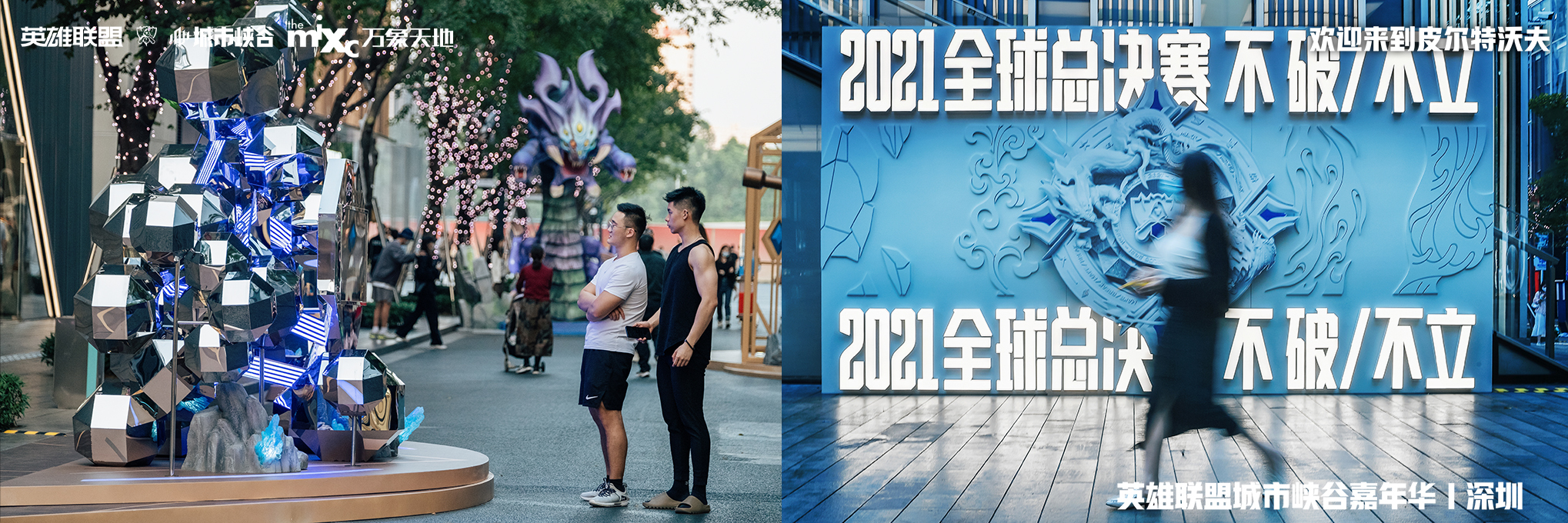 除了超沉浸的皮城景点和英雄Coser互动外,深圳-万象天地城市峡谷嘉年华也将于10月30日-31日、11月6日的2021全球总决赛半决赛和冠亚军决赛日,在深圳万象天地时光广场和4家VIP合作商铺中设立线下观赛场地,共同见证2021英雄联盟全球总决赛的巅峰之战!