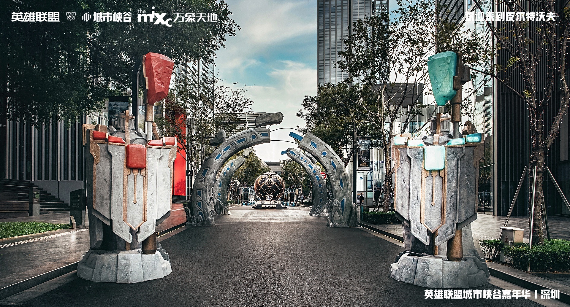(英雄联盟城市峡谷嘉年华入口,走过红蓝防御塔,通往游戏电竞之路)