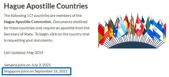最近,新加坡加入了“海牙国际认证公约Hague Apostille Convention”。