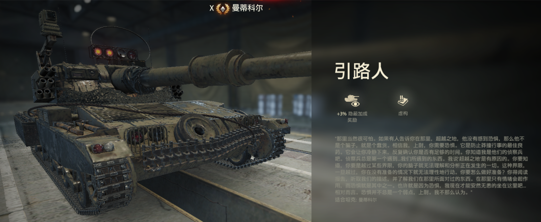 各位车长老爷们大家好啊。本涂装名为“引路人”,为2021年万圣节活动“米尔内-13”特供风格,是Y系10级轻型坦克曼蒂科尔的专属3D皮肤,售价4500金币。