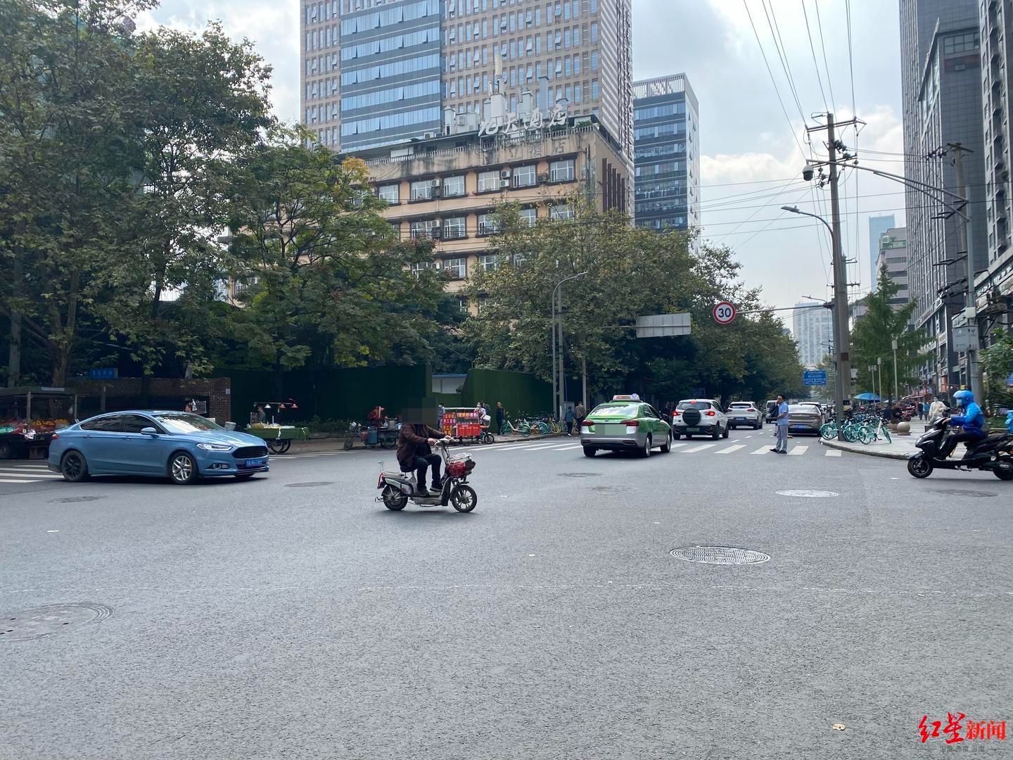 随后记者来到锦江区庆云西街与庆云北街交汇处的十字路口,该路口紧靠市二医院,车辆、行人较多。记者在路口观察了20分钟,总共路过了20余辆电动车,大多数驾驶人员都没有佩戴头盔,仅有3辆电动车驾驶人员佩戴了头盔。