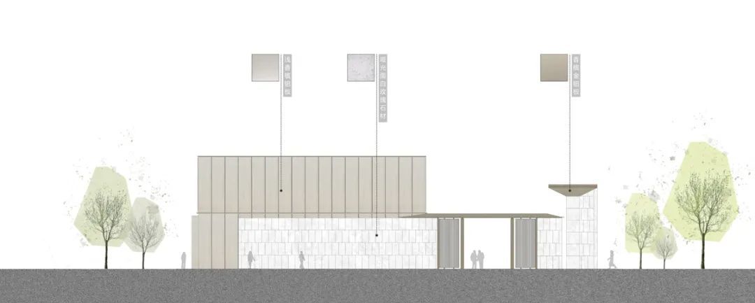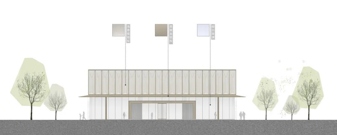 ◎社区中心及前场廊架南立面图