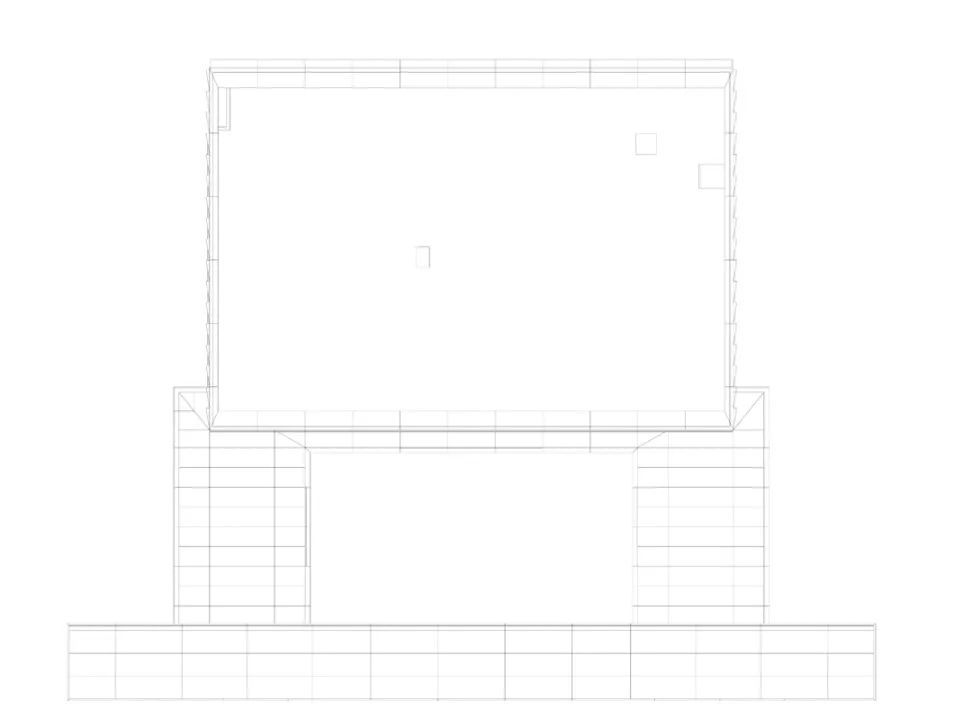 迈步向前,大门形成的框景中,社区中心的主立面如画卷般徐徐展开。纯粹通透的玻璃盒托起二层的铝板体量,营造出悬浮的空间感。