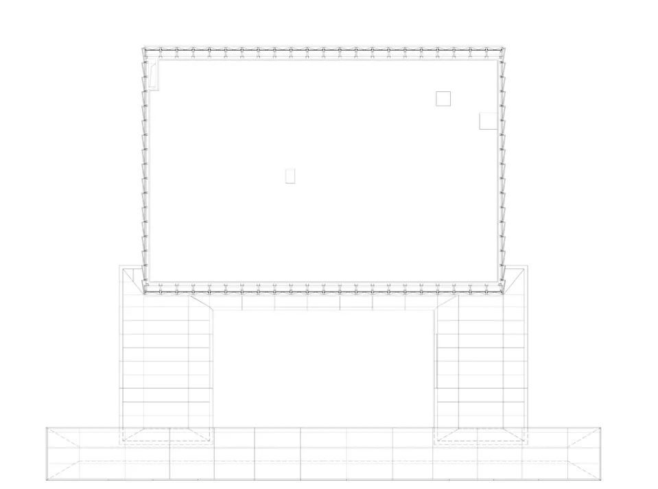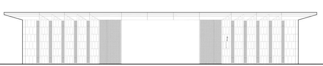 步入大门,两侧连廊向外延展,纤细的竖向立柱划分空间,金属格栅渗透外部风景,建筑和自然的界限于此淡化,两侧超薄的挑檐在横向延展的空间里为建筑营造向上的动势。