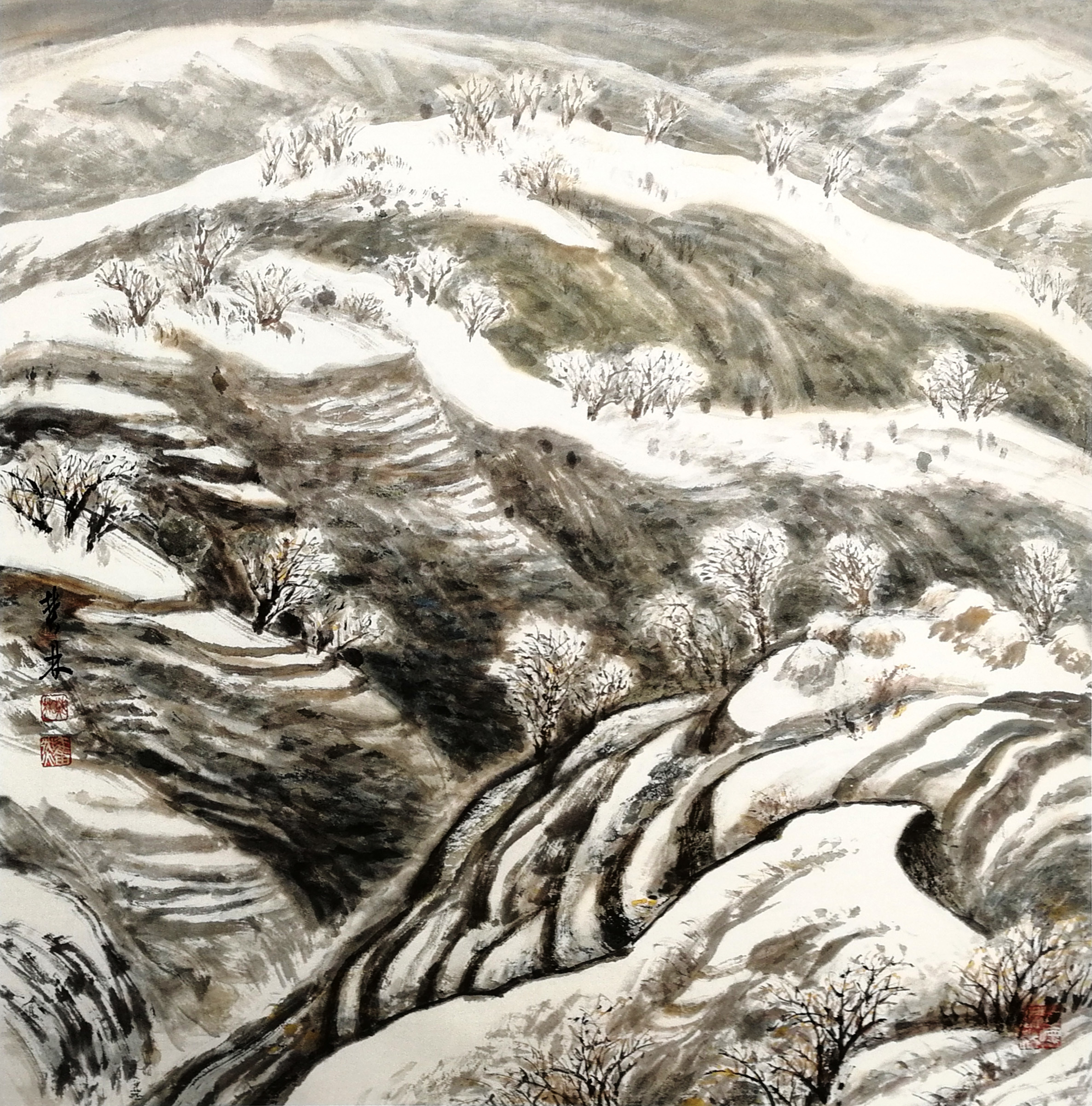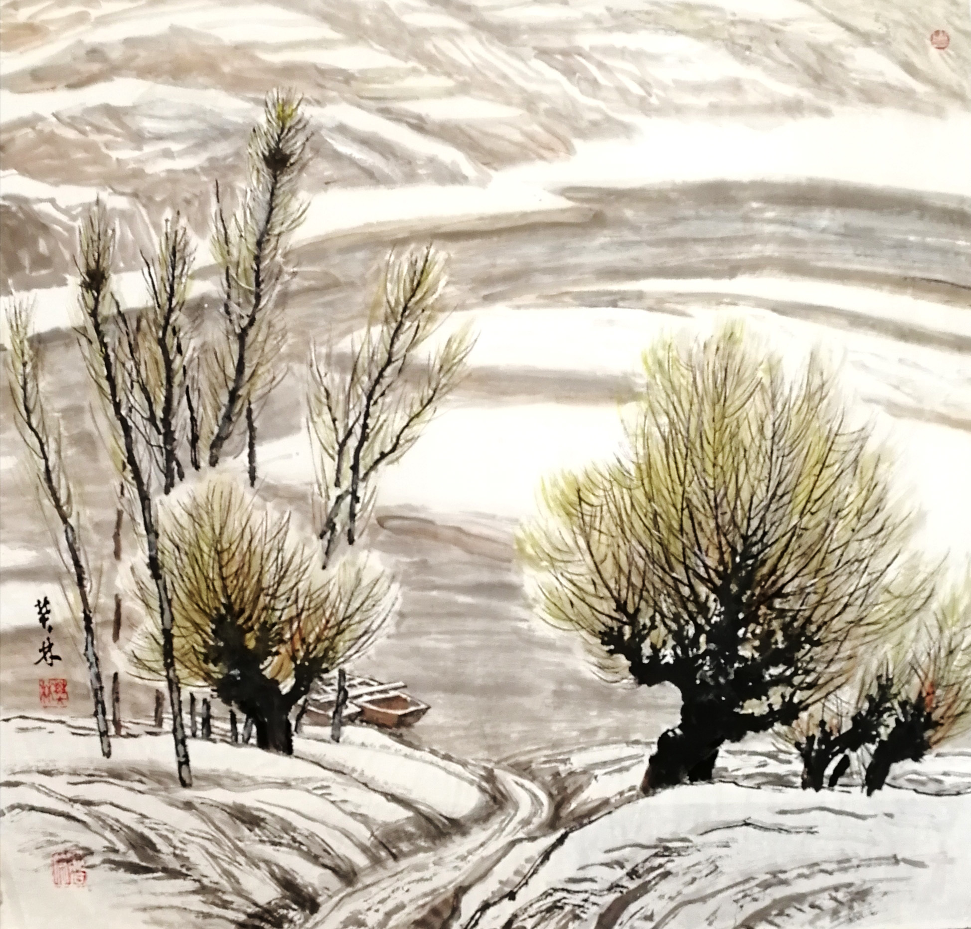 《黄河春雪》68x68cm 2018年