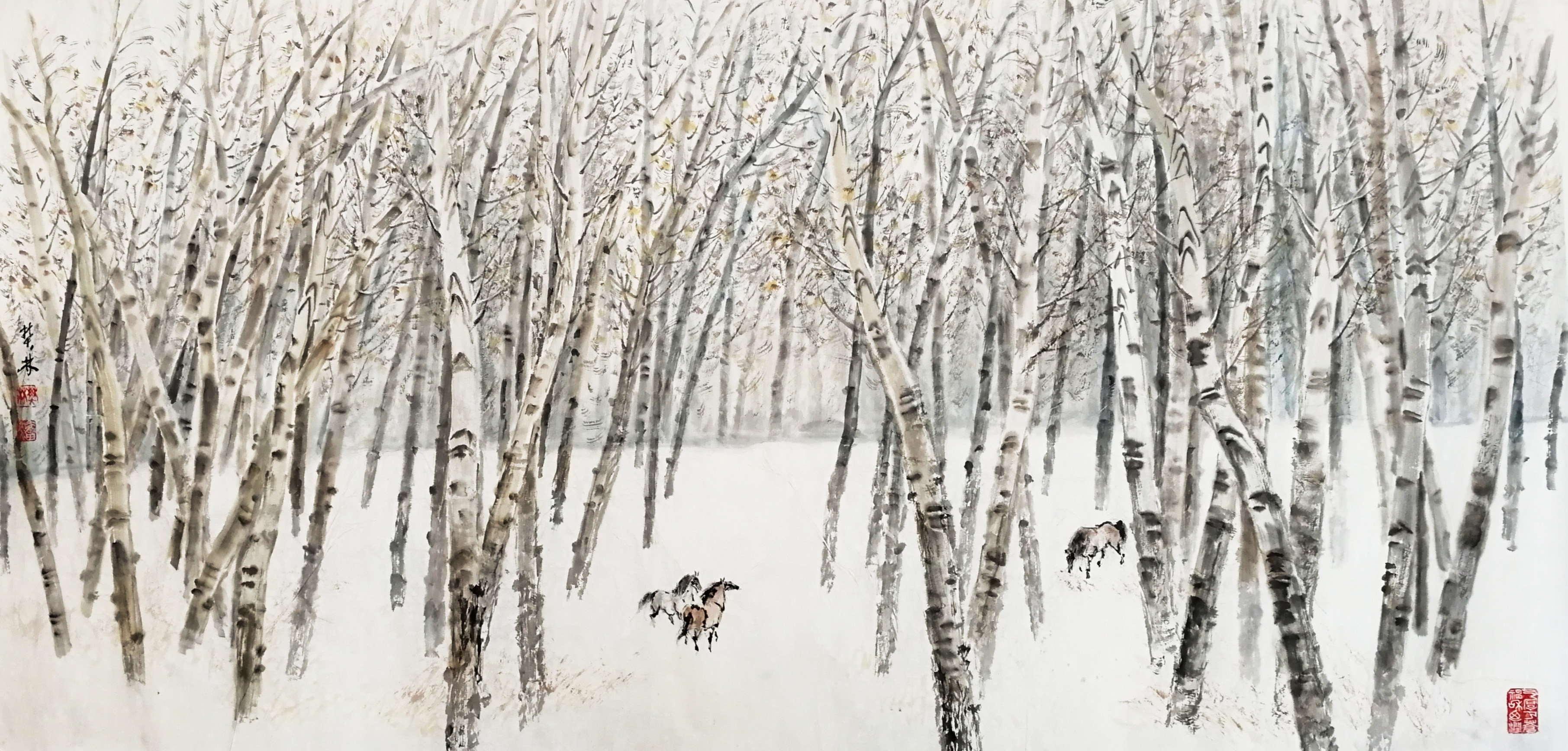 《桦林醉雪》136x68㎝ 2020年