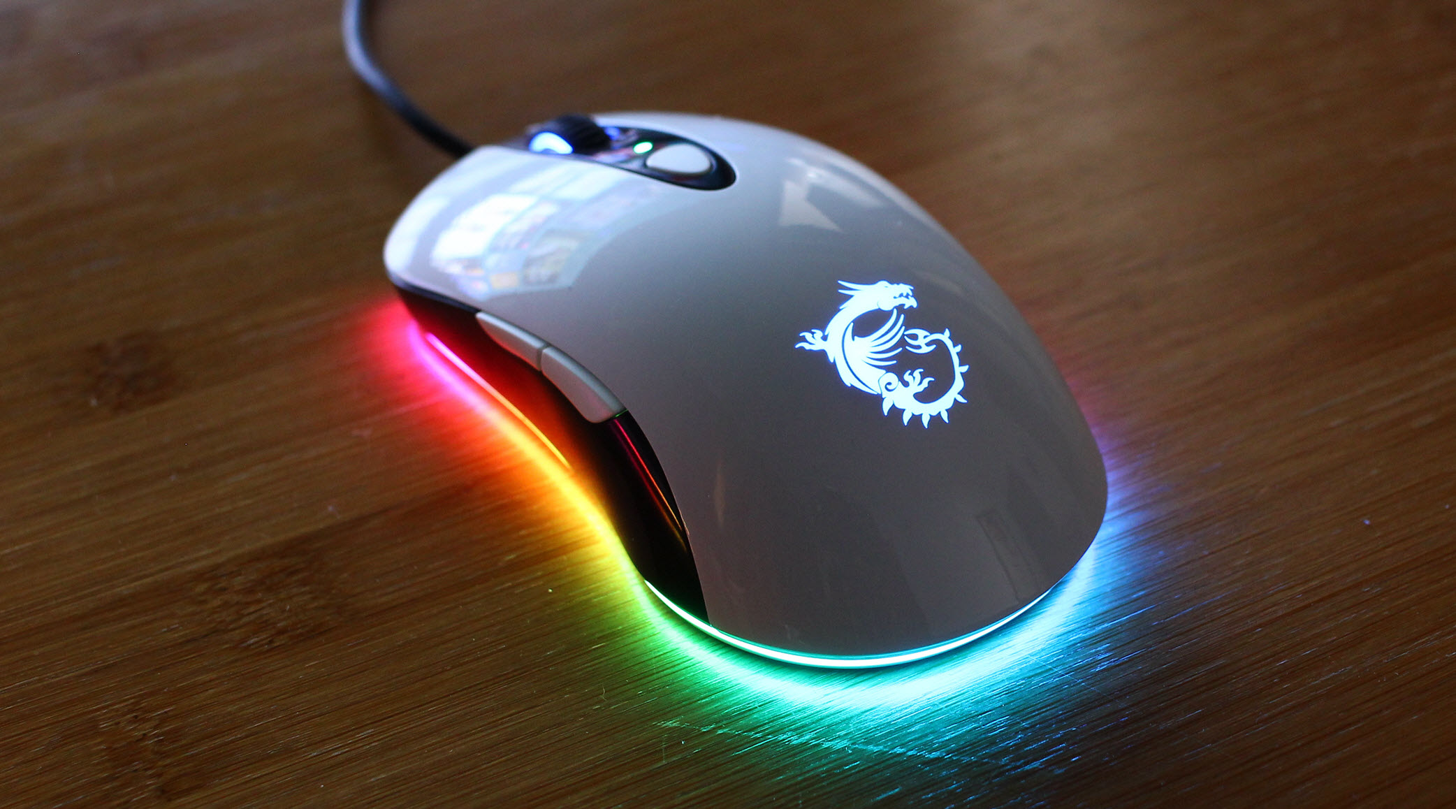 GM41游戏鼠标左右键为对称设计,搭配6个按键(滚轮、左右键、侧键2个、DPI切换按键在底部),采用磨材质,握感舒适,防滑不打油,经典的龙魂信仰logo透光很漂亮,鼠标不算长官宣130.1mm,我的手刚好,握起来轻飘飘的,但是光标很稳定。
