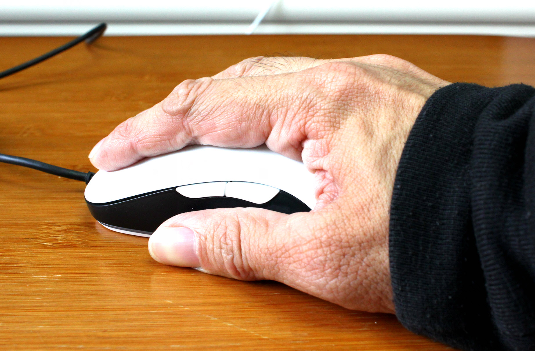 鼠标的左侧有着两枚使用镜面材质的侧键,它们的位置适中,可以让拇指轻松够到,侧键的键程适中,手感一致,但键程略长。