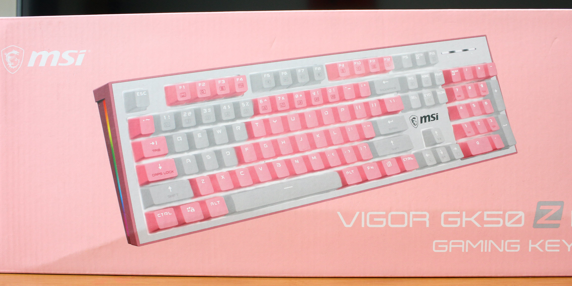 接下来是VIGOR GK50Z PIXEL系列机械键盘。有红轴,青轴,黑轴,茶轴等四种不同的键轴,并且有灰白,白灰,粉白,白,黑,等多种颜色及颜色代培,以及有PBT键帽,INS风,电竞风等以及RGB等不同风格的产品。