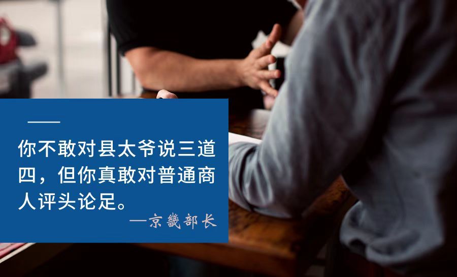 人类最不好的一个毛病,就是认为自己的痛苦都是别人造成的。自己调皮不好好学习考不上好学校,就埋怨没有遇到好老师;没有一份高收入的体面工作,就埋怨社会的不公和领导没有识人之明,但自己的困境总要找个宣泄的出口和对象为此负责,那么商人就是首当其冲的最佳选择。你不能怪知识分子,因为骂不过,也不能怪其他组织,因为斗不过。相比较而言,骂商人就成了最安全且明智的一个选择,因为对方不能把你怎么样,你没有任何经济和行政的负担,既然不需要付出任何成本,商人就成了第一个被攻击的对象和社会情绪泄压阀。你不敢对县太爷说三道四,但你真敢对普通商人评头论足。