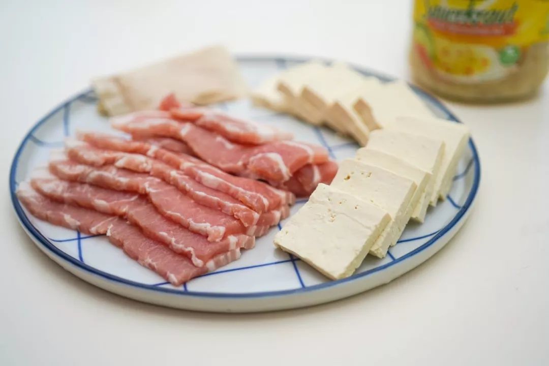 用来做大东北的酸菜白肉锅,简简单单做一人份。只要准备薄片五花肉: