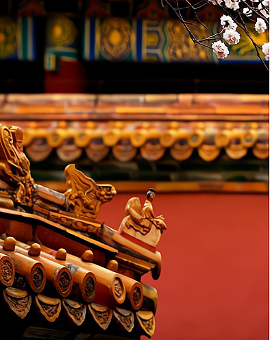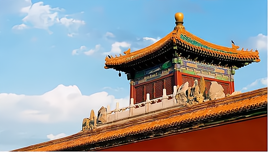 故宫的装饰是极具中华文化内涵的,屋顶的装饰做出翘角飞檐,饰以各种雕刻彩绘,增加华丽的走兽装饰。