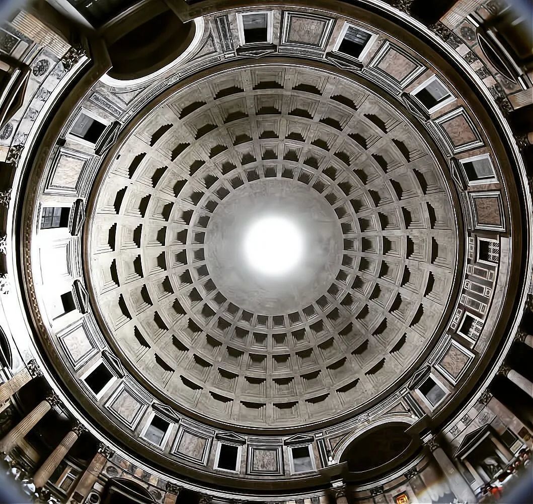 当天气晴朗时,圆洞的影子在阳光的照射下形成一个巨大的光斑,投射在万神庙里,仿佛要唤醒庙里沉睡的众神。