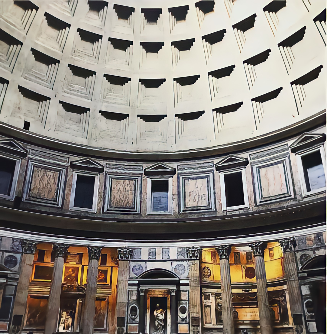 这种简洁干净又恢宏浩大的建筑样式,和谐大气,使万神庙具有一种崇高的美感。
