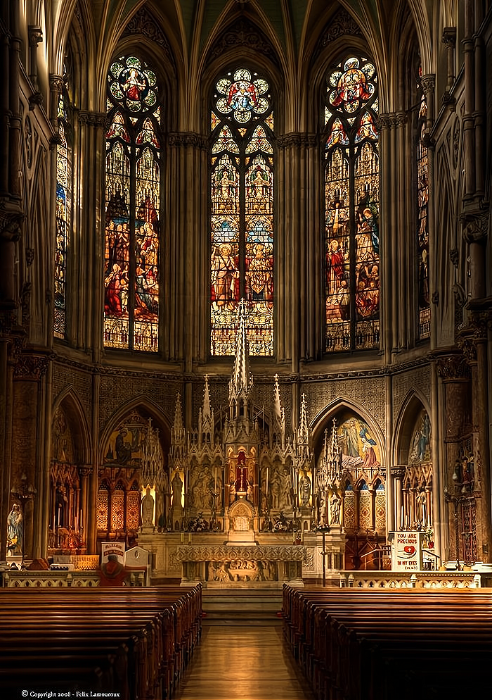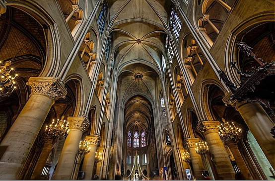 整个建筑以线条、雄伟的外观和内部空阔的空间以及玫瑰花窗的结合,使哥特式的建筑呈现出一种浓厚的宗教氛围。